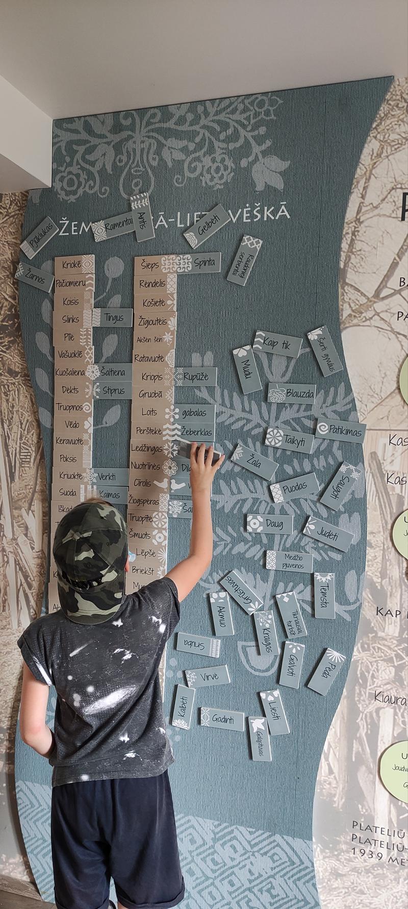 Dar viename kambaryje pirmame aukšte radome žemaitiškų ir lietuviškų žodžių žodyną! Tikrai linksma ir įdomi užduotis! P.S. jei žodžių atitikmenų nežinai, ne bėda- galima juos suporuoti pagal nupieštus įvairius toms žodžių poroms priskirtu raštu/ simboliu!