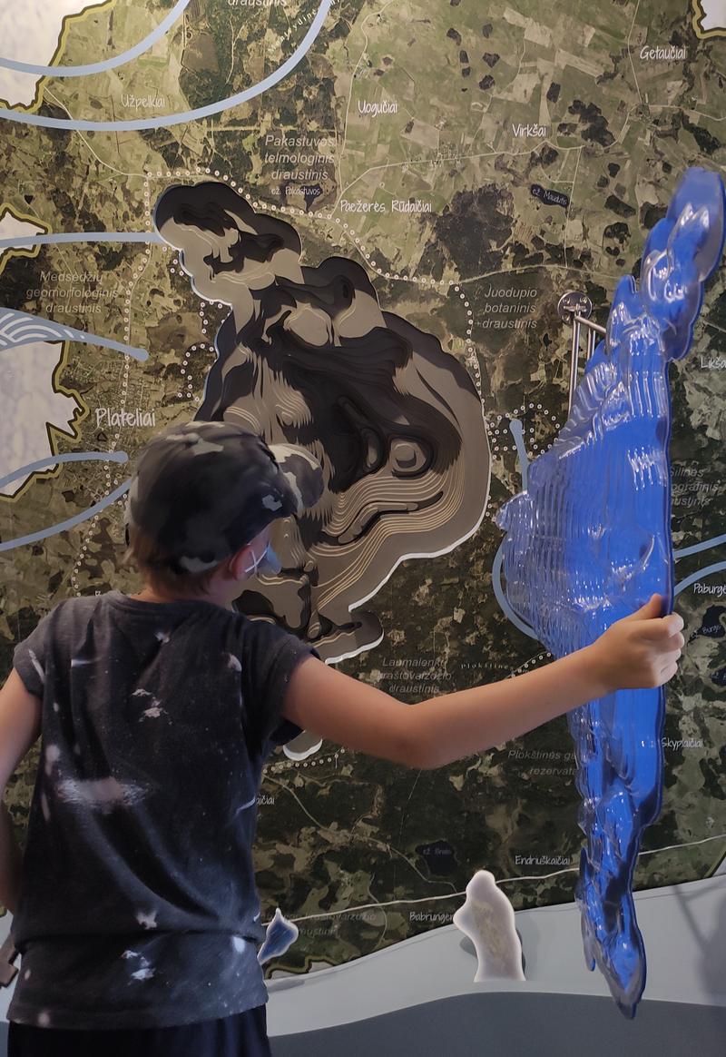 Apžiūrėję iš viršaus, leidžiamės žemyn ir keliaujame į Plateliuose esantį lankytojų centrą. Čia vaikams buvo įdomiausia! Viskas liečiama, juda, keičiasi, perteikia informaciją.