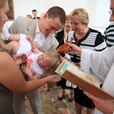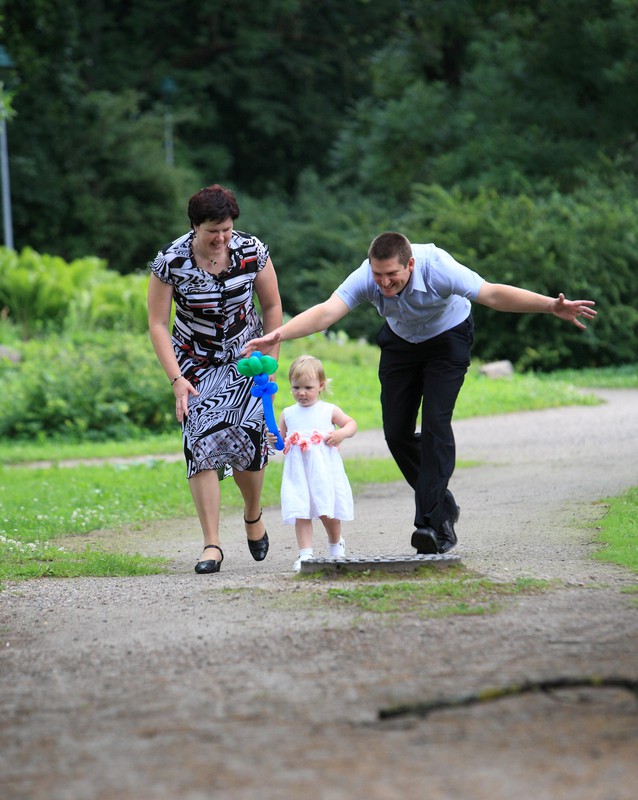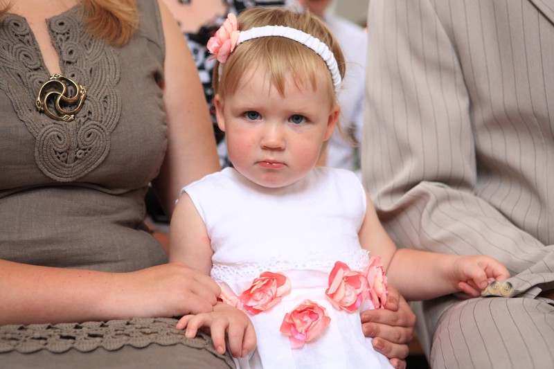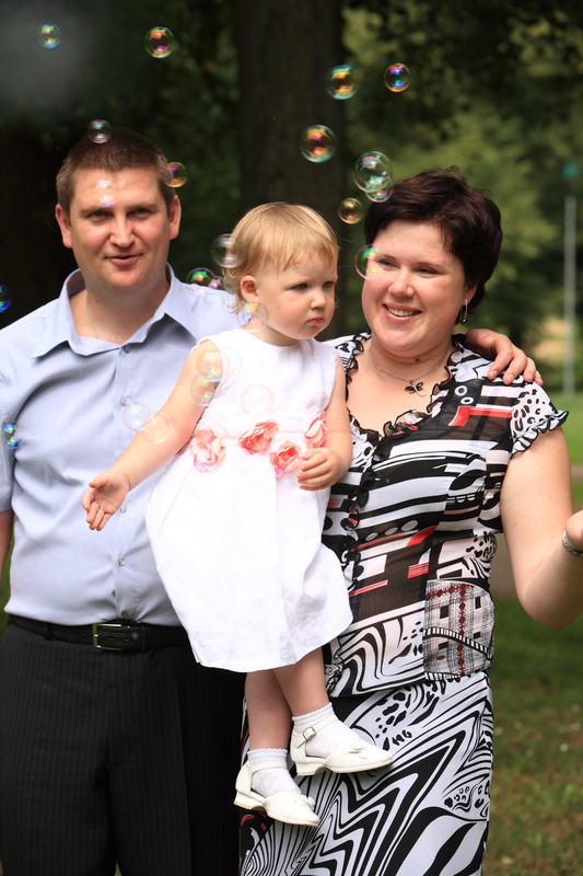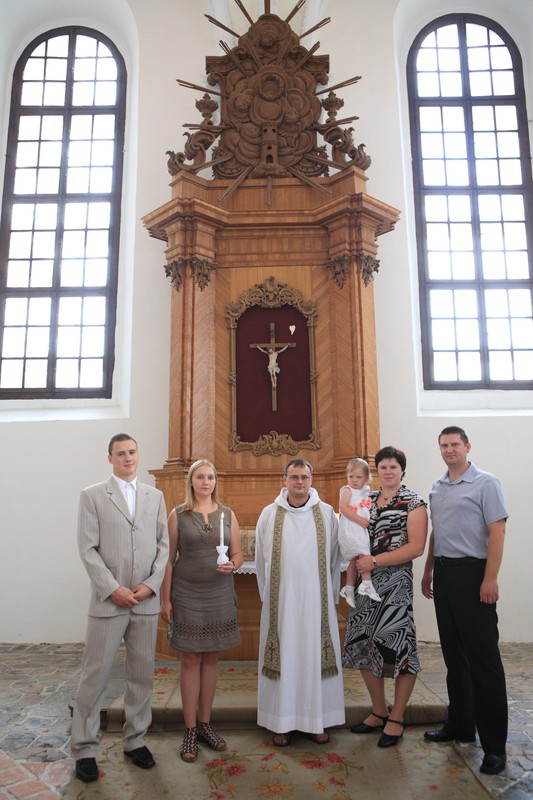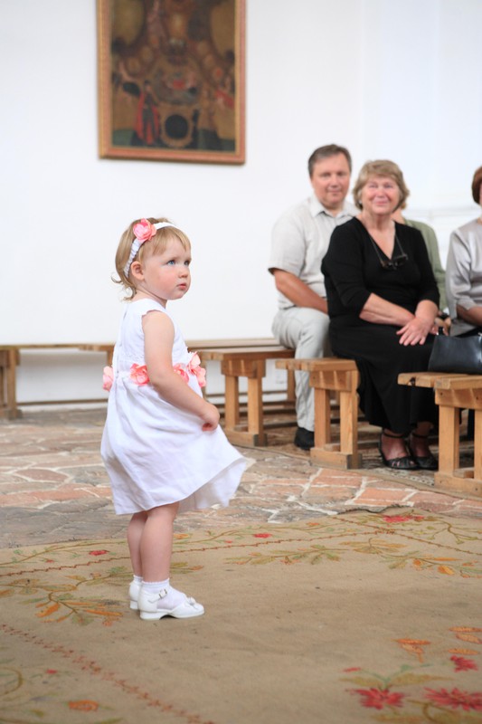 2011 m. liepos 2-ąją Vilniaus bernardinų bažnyčioje įvyko Rusnės krikštas. Rusnytė saugiai jautėsi krikštatėvių draugijoje... Kad taip visą likusį gyvenimą...Rusnytė – labai smalsi mergaitė, todėl savo šventėje būtinai turėjo apžiūrėti bažnyčios papuošimus...Tylos akimirka... Rusnė dėmesingai stebi, ką daro mamytė...Žinote, dar ir šiandien girdžiu po bažnyčią bėgiojančios dukrytės batukų kaukšėjimą... Sunkiai jai pavyko išbūti ant tėvelių, krikštatėvių ir senelių rankų...Pagaliau krikštatėvis pagavo... Tačiau jam kažkodėl juokinga, o Rusnei – visai ne... Ką tas kunigas man čia daro?Vaikučiams nemaloni, bet labai svarbi krikšto dalis, tačiau Rusnytė atsilaikė puikiai...Nuotrauka atminimui su tėveliais ir krikštatėviais bei krikštą suteikusiu kunigu...Po bažnyčios ceremonijos, kol mūsų neužklupo lietus, įvyko trumpa fotosesija su tėveliais......ir krikštatėviais... Šią dieną buvo labai daug burbulų – Rusnė be galo juos mėgsta......buvo ir balionų, be kurių neįsivaizduojame skambiabalsės vaikystės...Dar truputį burbulinomės...Pavysim, pagausim savo Paukštulį...Krikštynų dieną Rusnė buvo tikra Princesė (bent taip manome mes, jos tėveliai)... Patinka dukrytei būti dėmesio cente ir maivytis...Šiltas mamytės bučkis... Iš visos širdies – su didžiausia ir karščiausia meile bei pagarba tau, mano dukryte...