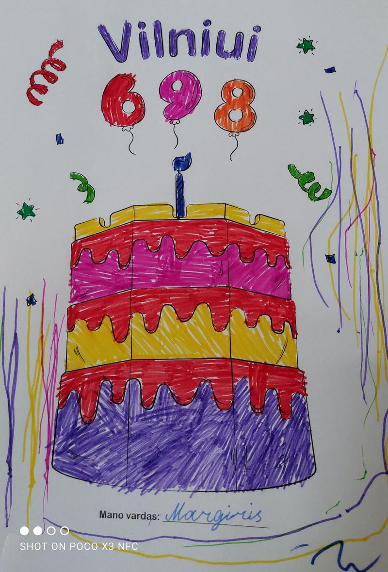 Labai tinkama vieta ir proga pakalbėti apie Vilnių, Gediminą, vilką. Apskritai, apie mūsų pačių istoriją. O šiandien spalvinome gimtadienio piešinį,