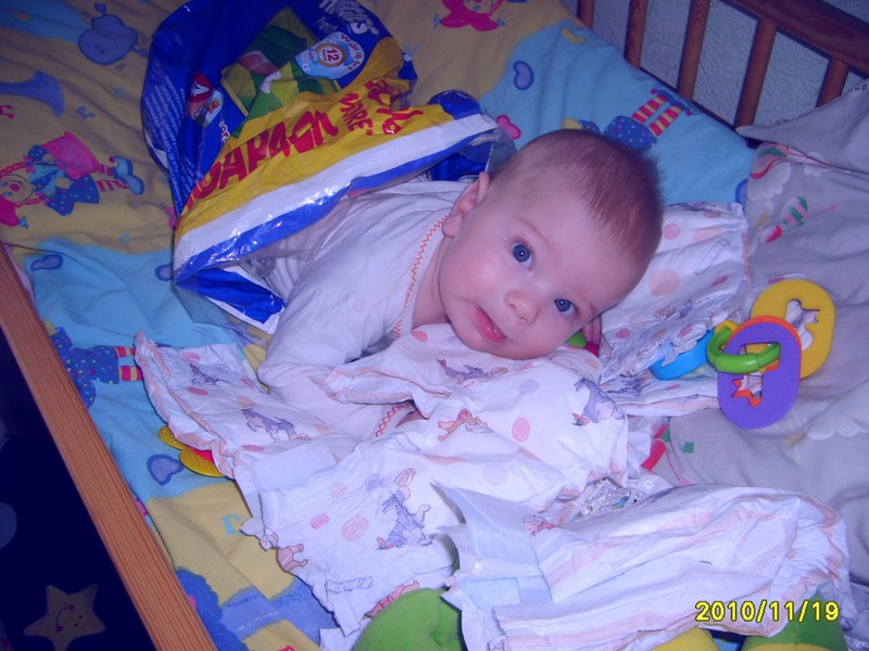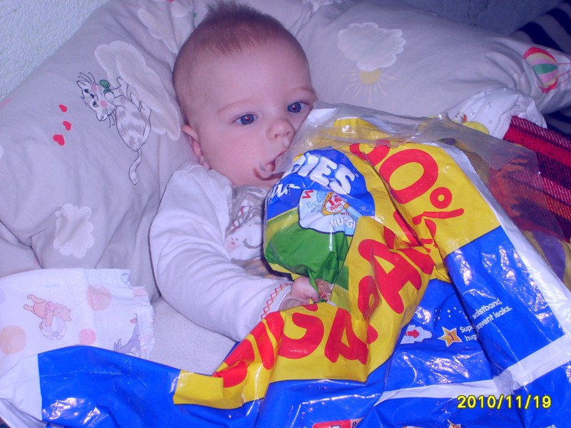 guliu tarp sauskelnių visai gražiai atrodau pažiūrėkit aš visas telpu į sauskelnių maišą su HUGGIES smagu ir sausa ir pažaisti visai smagu reikia paragauti jau pavargau bežaisdamas